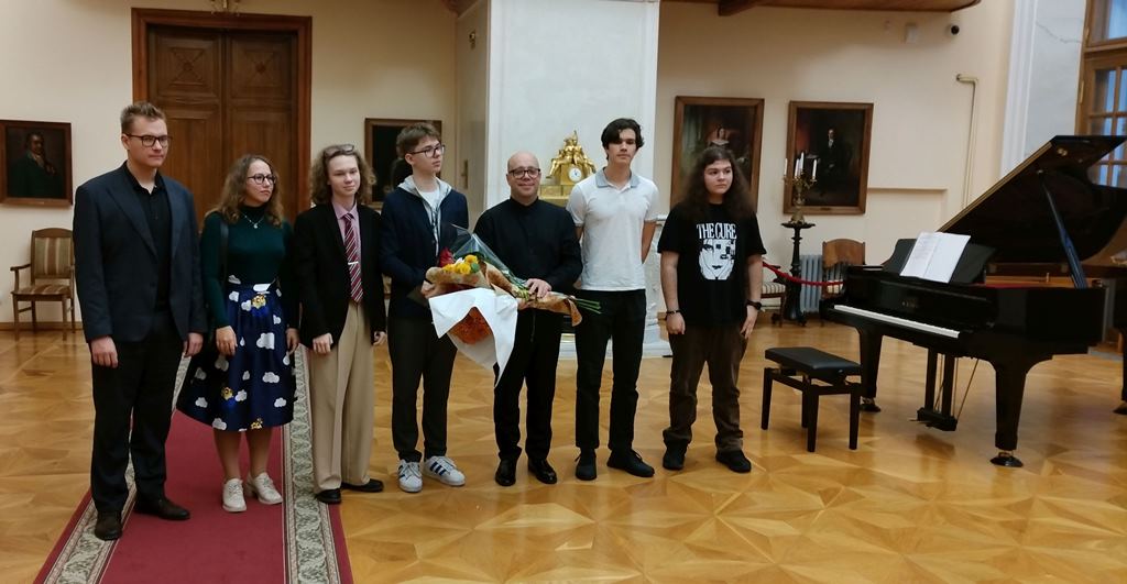 8 ноября, в Международной день пианиста, в двусветном зале Дворца Алфераки Таганрога прошел музыкальный вечер «Учитель и ученики», в ходе которого пианист, композитор и музыкальный педагог Алексей Хевелев представил мировые премьеры фортепианных произведений молодых российских композиторов.