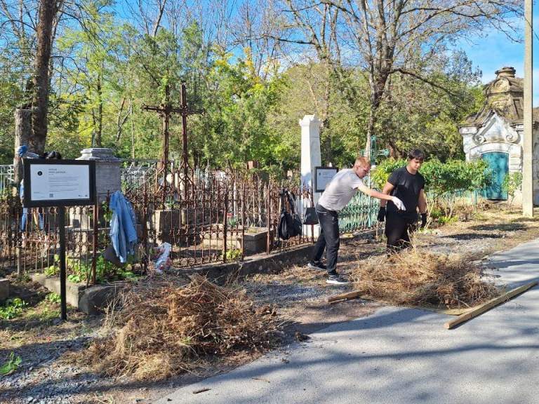 Прихожане храма Всех Святых и студенты колледжа морского приборостроения организовали субботник на территории Старого кладбища — привели в порядок центральную аллею, продолжили расчищать большой участок перед храмом.