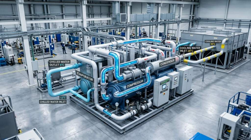 «Чиллеры — это сердце современных систем кондиционирования крупных производств, обеспечивая охлаждение без зависимости от внешней среды.»
