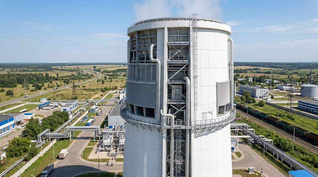 Башня градирни на заводе: эффективное испарительное охлаждение для химических процессов.