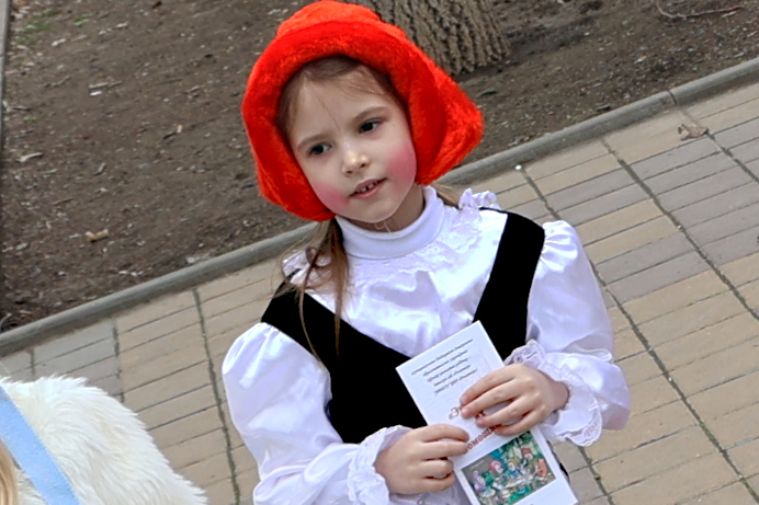 Детвору встречали сказочные герои: Красная шапочка, Кот в сапогах, Мальвина, Буратино и другие. Они задавали окружающим загадки, а отгадывающим ребятам (которых было немало), дарили сувениры и воздушные шары.
