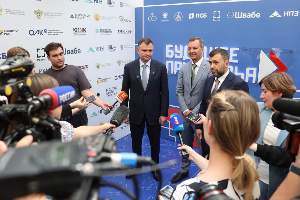 Форум начался с пленарного заседания на тему «Пространственное развитие Приазовья: задачи и возможности». В роли ключевых докладчиков выступили Андрей Яцкин, первый заместитель председателя Совета Федерации, Валерий Фальков, министр науки и высшего образования Российской Федерации, Юрий Слюсарь, глава Ростовской области, и Денис Пушилин, глава Донецкой Народной Республики.