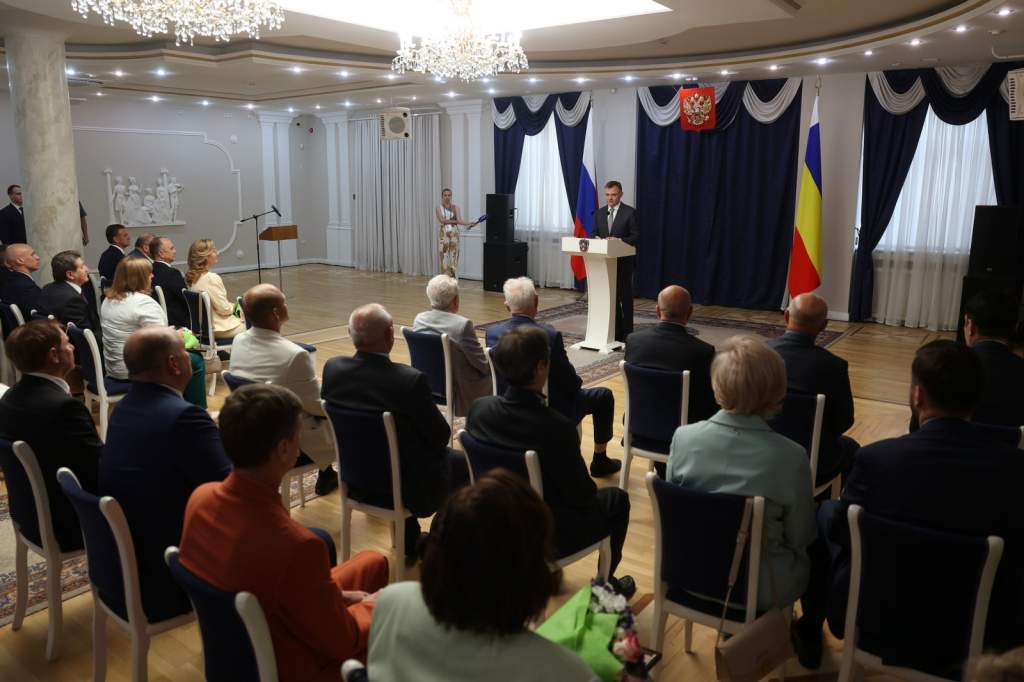 «Это признание государством и обществом заслуг, символ того, что ваш вклад навсегда останется в истории нашего региона и страны. Жители Ростовской области достойно трудятся, сражаются, помогают. Тем, кто прославляет родной край своим талантом, вручены заслуженные награды. Из результатов вашего, уважаемые земляки, труда складывается общий успех донского региона», — обратился к собравшимся Юрий Слюсарь.