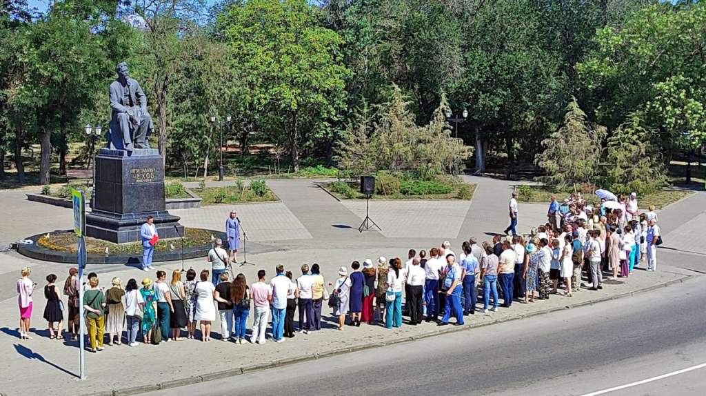 Утром 15 июля, в День памяти А.П. Чехова, состоялась традиционная церемония возложения цветов к его памятнику.